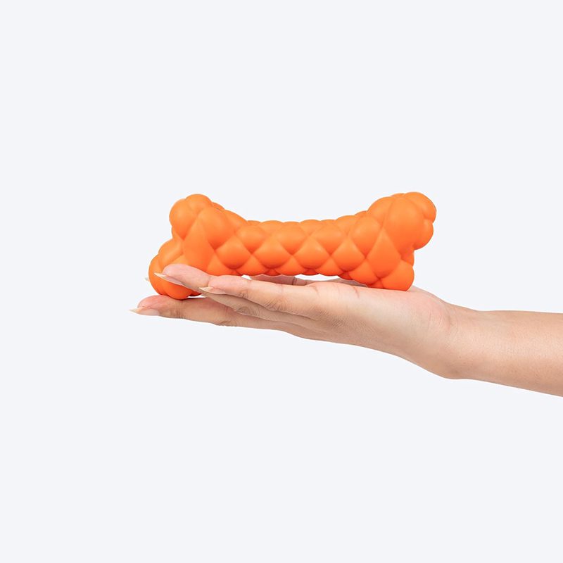 Chewtastic is a fun bone-shaped toy made from natural rubber, perfect to keep your dog busy for hours. It has a squeaker inside for mental play and a textured surface that helps clean teeth. Soft on your pet’s jaws, it’s safe for all breeds and can even hold treats for extra fun.