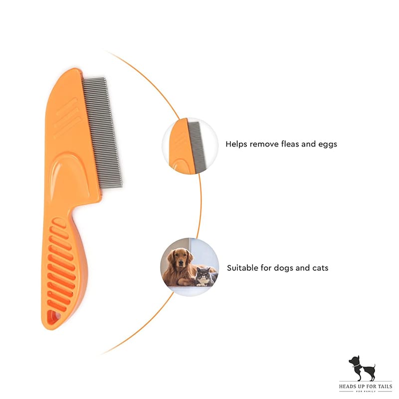 This flea comb is great for both cats and dogs. It helps remove fleas, eggs, and dirt from your pet’s fur. The fine stainless steel teeth gently pick up pests, keeping your pet clean and comfy. Easy to use and safe, it’s the perfect tool to keep your furry friend flea-free. Size: 18 x 5 cm.