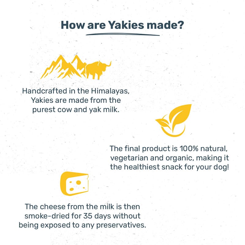 Yakies Puff Bites are great for training your dog. Just give one crunchy bite each time they follow a command. These treats are made by drying cheese from fresh milk for a month, then heating it until it puffs up. The result is a light, crunchy treat your dog will love.