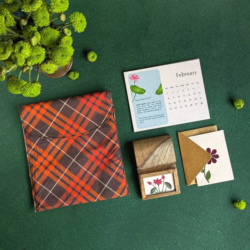 A thoughtfully curated set for lovers of simple beauty and conscious living. The Simply 2026 Bundle pairs handcrafted essentials with natural warmth—featuring a Borrowed Genius Calendar, a pressed-flower teak wood mobile stand, two pressed-flower note cards, and a soft fabric pouch.