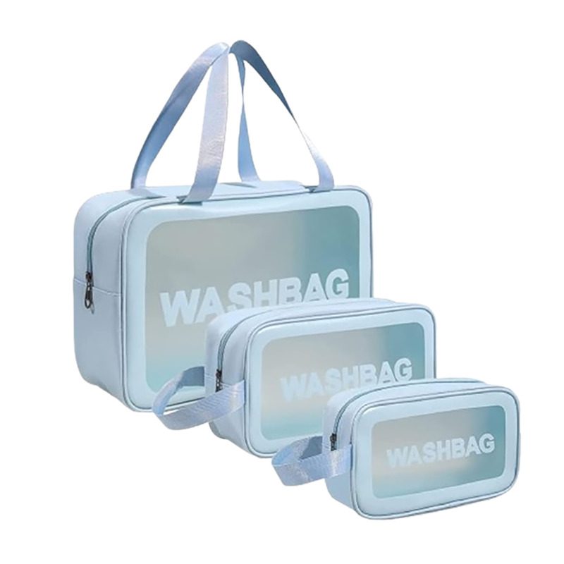 This clear toiletry travel bag is waterproof and simple to clean, keeping your items safe from water and dirt. Made from strong, eco-friendly PU and PVC, it’s tough, safe, and long-lasting. Great for home or travel, it holds makeup, toiletries, gadgets, and more. It comes in three sizes (30x20x11 cm, 26x16x9 cm, 22x12x7 cm), making it perfect for daily use, gym, bathroom storage, or as a carry-on. The see-through design lets you find things fast and keeps everything neat and easy to reach.