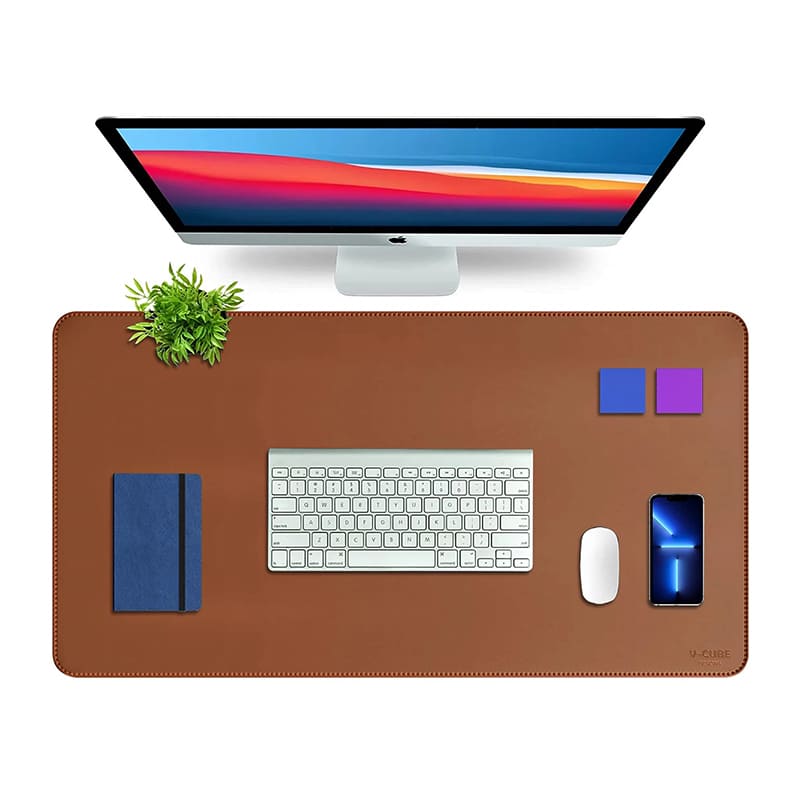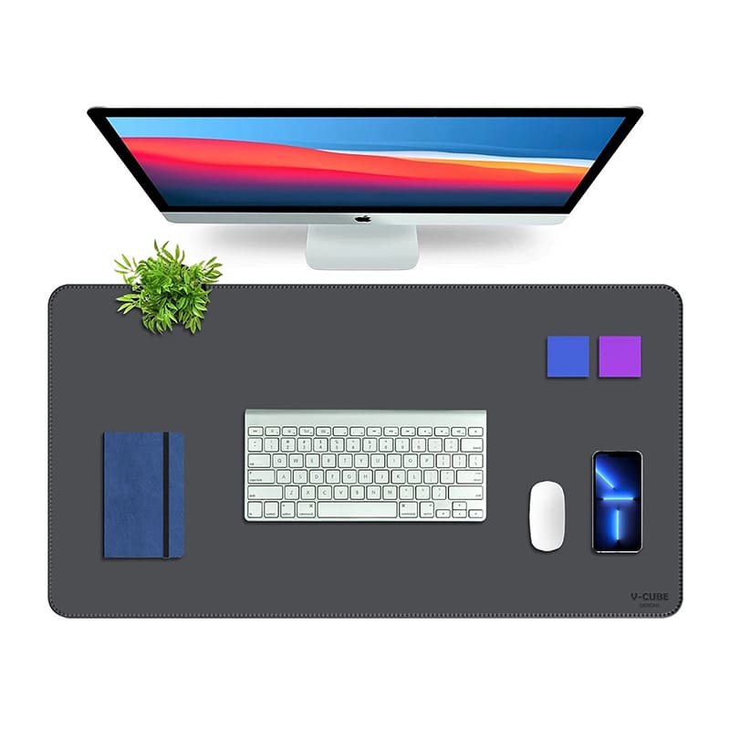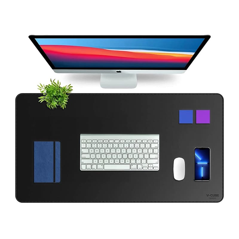 V-CUBE Designs Premium Vegan Leather Desk Mat 2.4mm Thick & Padded | Laptop Mat / Extended Mouse Pad | Stitched, Reversible, Sturdy Desk spread with High Tear / Peel Strength | Anti-Slip, Splash-Proof