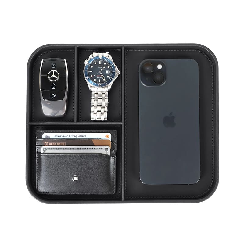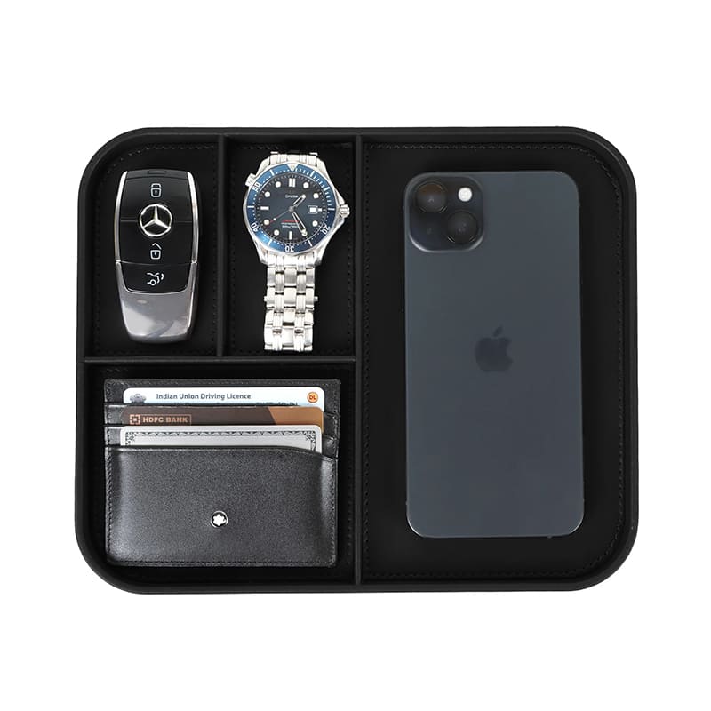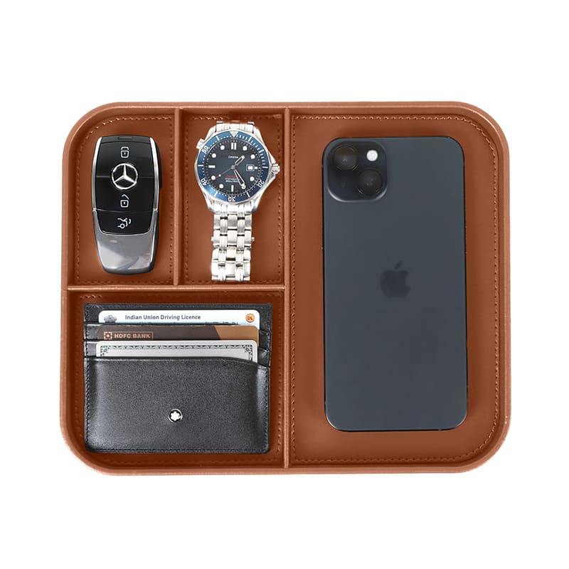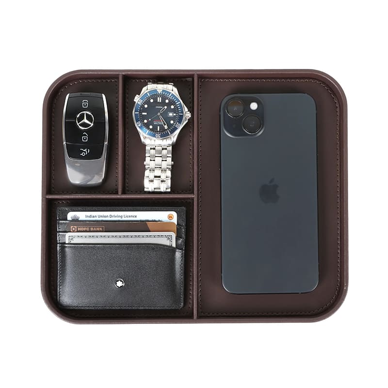 V-CUBE Designs Premium Vegan Leather Valet Tray | Stylish & Modern Office Desk Tray | Table / Bedside / Entryway Organizer for everyday essentials like Keys, Phone, Watch, Wallet, Jewellery | Spill-Proof
